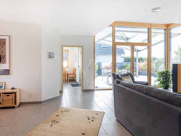 Zunächst betonen wir hier die hervorragende Möglichkeit, Wohnen & Arbeiten zu kombinieren, denn ein Homeoffice-Bereich wird für viele immer wichtiger und wurde beim Bau dieser Immobilie sehr groß...