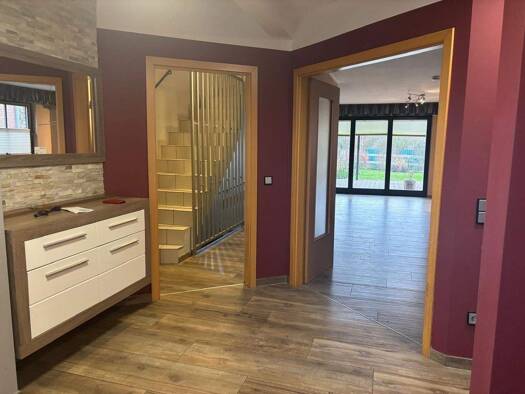 Beim Betreten der Immobilie gelangen Sie zunächst in eine großzügig gestaltete Diele, von der aus sämtliche Räume des Erdgeschosses bequem erreichbar sind und einen angenehmen ersten Eindruck des Hau...