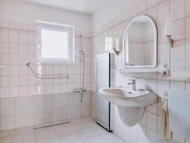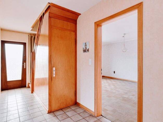 Nach dem Betreten des gepflegten Reihenmittelhauses gelangen Sie in den gefliesten Windfang, von dem Sie zur Linken das hell geflieste Gäste-WC vorfinden. Über den ebenso gefliesten Hauptflur erreich...