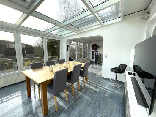 Dieses idyllisch gelegene Archtitektenhaus steht auf einem Hügel in Menden-Asbeck und ist wunderschön umgeben von der typischen sauerländischen Landschaft. Das Haus besteht aus der ca. 309 m² großen ...