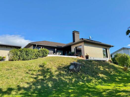Das 1979 errichtete Kampa-Fertighaus wurde 2015 umfassend saniert und präsentiert sich heute in einem modernen, sehr gepflegten Zustand. Auf rund 219?m² Wohnfläche bietet es eine gelungene Kombinatio...