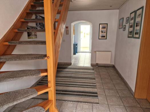 Das zentral im Ortskern , direkt an einer Hauptstrasse, gelegene Wohn-und Geschäftshaus verfügt auf 3 Ebenen über eine Gewerbeeinheit und 2 Etagenwohnungen mit jeweils 3 Zimmer. Mit geringem Renovier...