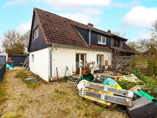 In einer ruhigen und idyllischen Umgebung präsentiert sich diese gepflegte Doppelhaushälfte mit Walmdach auf einem sonnigen Grundstück. Das helle Haus überzeugt durch seinen praktischen Grundriss, wä...