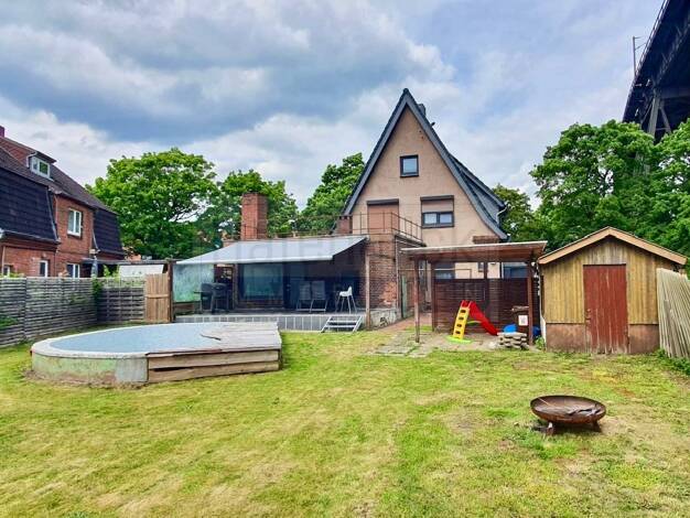 Willkommen im nur ca. 230 m vom Nord-Ost-Kanal gelegenen, gepflegtem Reihenendhaus, das auf einem großzügigen Grundstück von ca. 752 m² in massiver Bauweise errichtet wurde. Die rot verblendete Fassa...