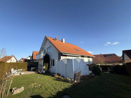 Dieses tolle Objekt mit einem sehr großzügig angelegten und umzäunten Garten und ca. 703 m² Grundstücksfläche liegt in einer ruhigen Wohngegend unweit der romantischen Straße. Für Ihre Fahrzeuge steh...