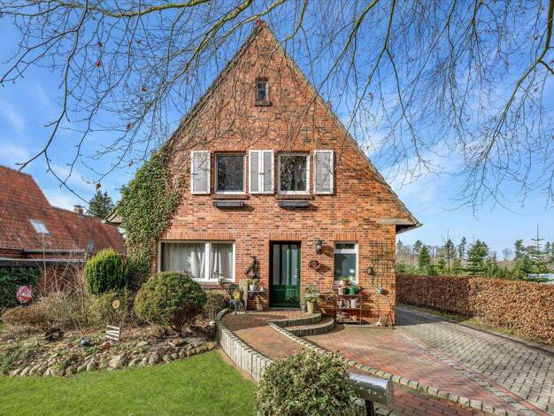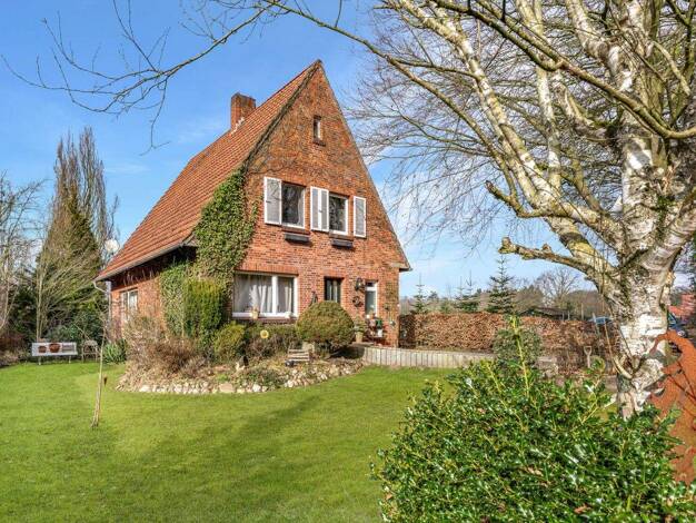 Auf einem rund 1,5 Hektar großen, gepflegten Grundstück befindet sich dieser charmante Resthof in idyllischer, ländlicher Lage. Die Zufahrt, der Hof und der Baumbestand vermitteln Ruhe, Geborgenheit ...