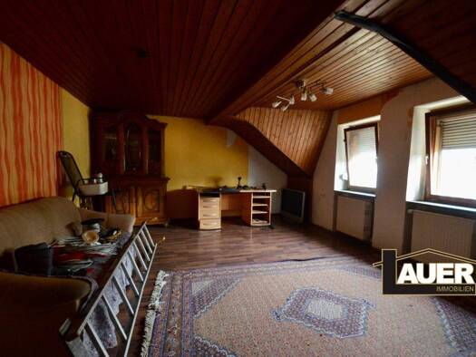 Einseitig angebautes Einfamilienhaus mit einem großen Grundstück und einer weiteren Ausbaureserve im Obergeschoss. Das Haus befindet sich in einem renovierungsbedürftigen Zustand und ist ideal für Ha...