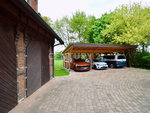 Objektbeschreibung Bauernhaus (Resthof) mit Nebengebäuden in Massiv-Fachwerkbauweise, Doppelgarage mit Werkstatt. Ideal auch für Pferdehaltung geeignet, da Wiesen und Ackerflächen vorhanden sind. Urs...