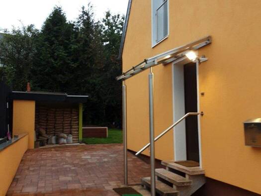 Die Immobilie ist in Holzständerbauweise der Firma Kampa erstellt worden. Der Keller sowie die Doppel-Garage, wurden massiv gebaut. Vom Wohnzimmer gelangt man auf die eine Terrasse, die auf dem Dach ...
