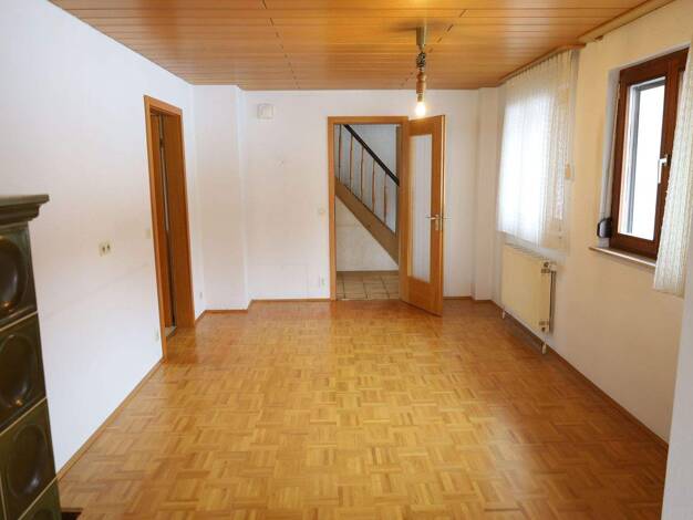 Im Erdgeschoss über den Windfang befindet man sich im Herzen des Hauses. Hier ist ein großer und offener Wohn- und Essbereich mit Holz-Kachelofen und Zugang auf den Balkon. Die Küche ist separat und ...