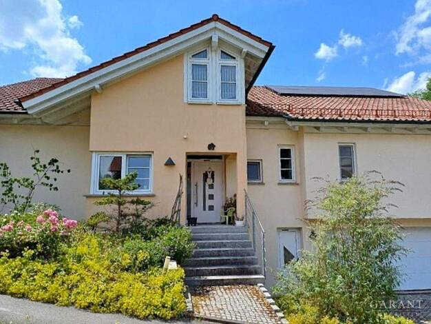 Das 1991 erbaute Einfamilienhaus mit Einliegerwohnung liegt am Ortsrand von Erolzheim. Die außergewöhnlichen und hochwertigen Einbaumöbel und die Holzdecken sind im zum Baustil des Hauses passenden L...