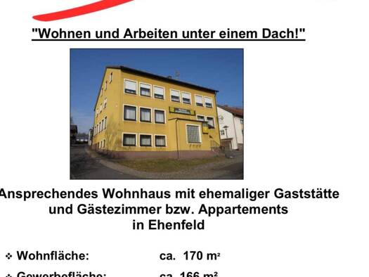 ?? BESCHREIBUNG Zum Verkauf steht ein großzügiges Wohn- und Gewerbeanwesen in Ehenfeld (Ortsteil von Hirschau) mit vielseitigen Nutzungsmöglichkeiten, laufenden Einnahmen und erheblichem Entwicklungs...
