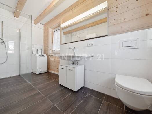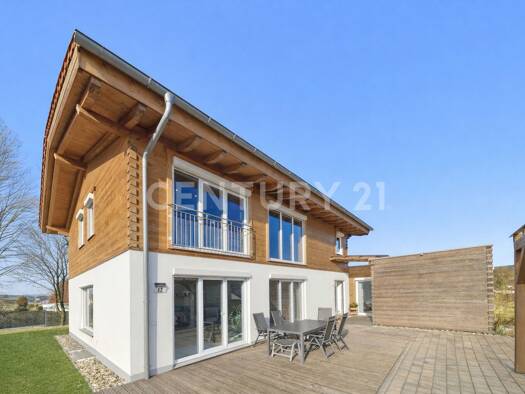 Dieses wunderschöne Chiemgauer Holzhaus vereint traditionelle und nachhaltige Bauweise mit modernem Wohnkomfort. Das vollständig aus hochwertigem Fichtenholz errichtete Haus erfüllt den energieeffizi...