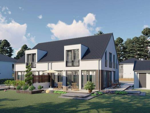 Die Doppelhaushälfte „Luzern“ überzeugt durch ein durchdachtes offenes Raumkonzept, das von fühlbarer Helligkeit und modernem Wohndesign geprägt ist. Auf einer Wohnfläche von rund 142 Quadratmetern f...