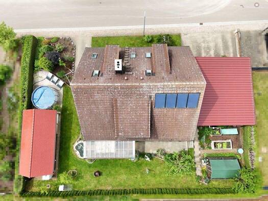 Objektbeschreibung Einfamilienhaus, voll unterkellert, ausgeb. DG, Doppelgarage, großer Garten. Baujahr 1994, Grundstück 998m², Wfl. ca. 164m², 6 Zimmer, 6 Kellerräume. Außenmaße: Wohnhaus 11,44 x 9,...