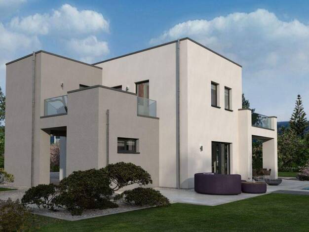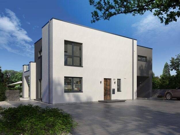 Bauhausvilla Black Label 22 - Architektur mit Charakter 257 m² Wohnfläche 4 Schlafzimmer, 2 Bäder + Gäste-WC Großzügiger Wohn-/Ess-/Küchenbereich Riesige Dachterrassen mit Glasgeländer Integrierter C...