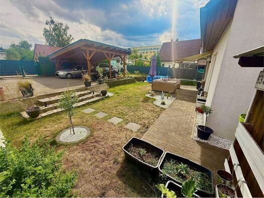 Hier werden Sie sich wohlfühlen. 115 m² Wohnfläche in durchdachter Raumaufteilung, 2 Terrassen im großzügigen Garten, helle und freundliche Atmosphäre, gute Anbindung an den öffentlichen Verkehr - da...