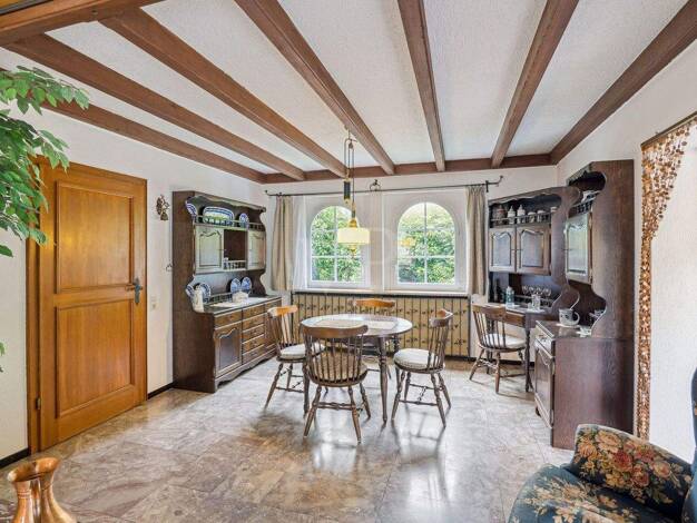 Das attraktive Wohnhaus steht in schöner und ruhiger Südhang-Höhenlage mit Fernblick auf einem ca. 784 m² großen ebenen Grundstück mit Rasenfläche, Nutzgarten, Blumenbeeten und altem Baumbestand. In ...