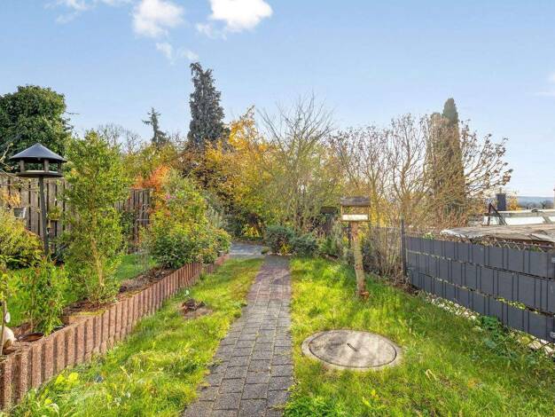 Grundstück: Das ca. 650 m² große Süd-West ausgerichtete Grundstück bietet einen großzügigen Vorgarten und einen pflegeleichten seitlichen und rückwärtigen Garten mit Rasen, Sträuchern und Bäumen. Des...