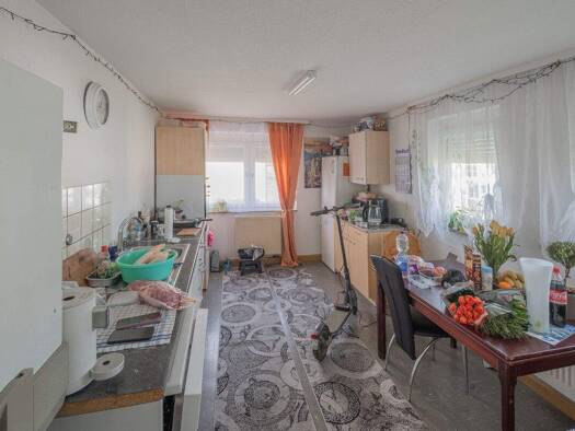 Viel Platz bietet das im Jahr 1975 erbaute Wohnhaus in Bösingen. Übers Treppenhaus gelangen Sie in die Hauptwohnung. Eine geräumige Küche mit Speisekammer bietet alles, um leckere Gerichte zu zaubern...