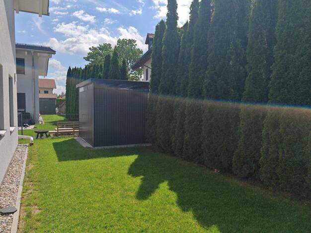 Ein Familienparadies mit eigenem Garten ca. 70 qm, einer einladenden Terrasse, schönen eingewachsenen Büschen und Bäumen, da möchte man nicht nur wunderbar frühstücken, sondern auch so manches Sommer...