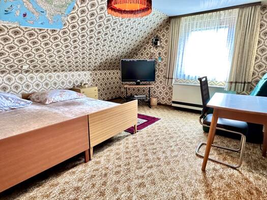 Das Wohnhaus mit 2 Wohnungen ist sofort bezugsfrei. Es eignet sich hervorragend für Familien mit Kindern. Es ist voll unterkellert und hat direkten Zugang in den Garten. In den Jahren 1978 und 1988 w...