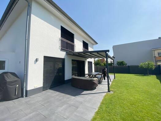 Dieses außergewöhnliche, freistehende Einfamilienhaus vereint moderne Architektur, stilvolle Innenausstattung und ein Höchstmaß an Wohnkomfort. Auf einem gepflegten Grundstück in ruhiger, familienfre...