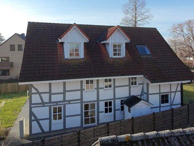 Entdecken Sie dieses charmante Fachwerkhaus mit ca. 212 m² Wohnfläche auf einem 382 m² Grundstück - traditioneller Charakter trifft modernen Wohnkomfort. Im hellen Erdgeschoss erwarten Sie Wohn-/Essb...