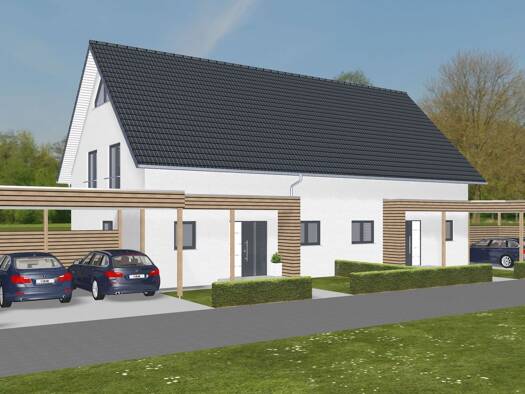 Objektbeschreibung In naturnaher Lage von Lübbecke-Nettelstedt entsteht diese moderne Doppelhaushälfte in nachhaltiger Holzständerbauweise (KfW 40 LCA). Das durchdachte Raumkonzept über drei Etagen b...