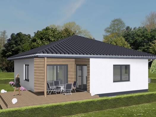 Objektbeschreibung In naturnaher Lage von Lübbecke-Nettelstedt entsteht dieser moderne Bungalow in nachhaltiger Holzständerbauweise (KfW 40 LCA). Mit seinem ebenerdigen, barrierearmen Raumkonzept ist...