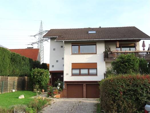 Auf einer Grundstücksfläche von 1.055 m² befindet sich dieses freistehende und gepflegte Mehrfamilienhaus mit 2 Wohneinheiten, einem zu Wohnraum ausbaubarem Dachboden und einer Garage. Die voll unter...