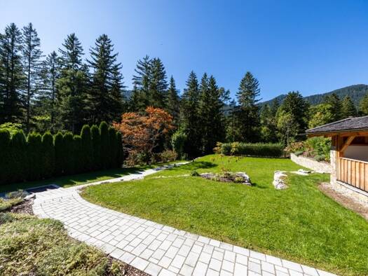 Die charmante Landhausvilla mit Herz präsentiert sich auf einem ca. 2.350 m² großen, sonnigen Grundstück mit Traumblick in die Blauberge und auf den Leonhardstein. Ein Rückzugsort mit Seele, hier füh...