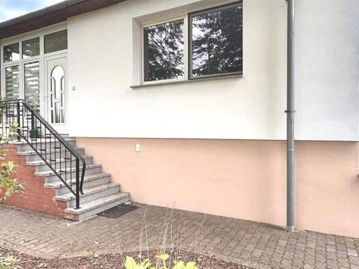 Der ca. 1976 errichtete Bungalow in Massivbauweise befindet sich in einem gepflegten Zustand und bietet ca. 102 m² Wohnfläche, verteilt auf vier Räume und eine verglaste Loggia/Wintergarten. Das Flac...