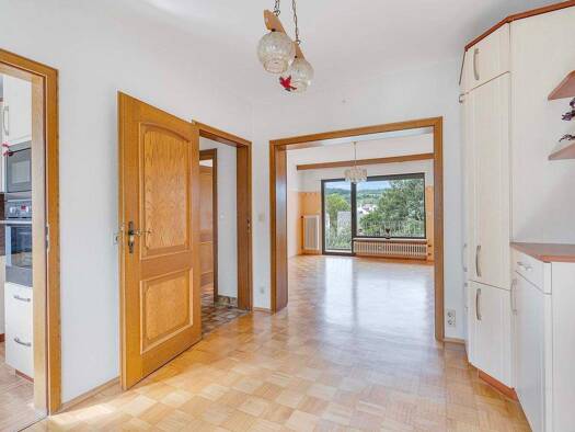 Objektbeschreibung Zum Verkauf steht ein massiv gebautes Einfamilienhaus (angebaut), dass um 1950 erbaut wurde. Es vereint traditionelle und moderne Elemente. Aufgrund der Lage mitten im Ortskern, ka...