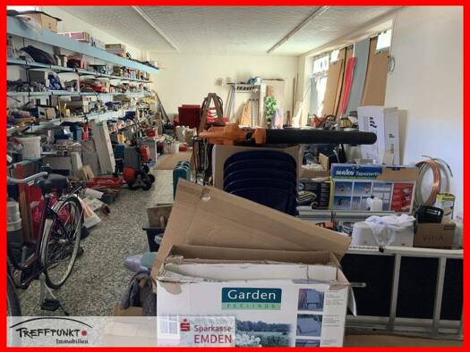 Diese Doppelhaushälfte aus dem Jahr 1952 steht auf einem Erbpachtgrundstück der Stadt Emden mit einer Größe von 549 m². Die Immobilie hat eine besondere Aufteilung: Der großzügige Küchen- und Essbere...