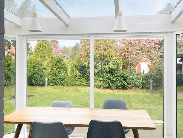 ++ Zeitlos moderne Architektur ... großzügige Räume, Wintergarten, überdachte Terrasse, zwei Balkone, Kamin möglich. Genießen Sie die herrliche Aussicht ins Grüne und die bedachte Ausstattung. Die Rä...