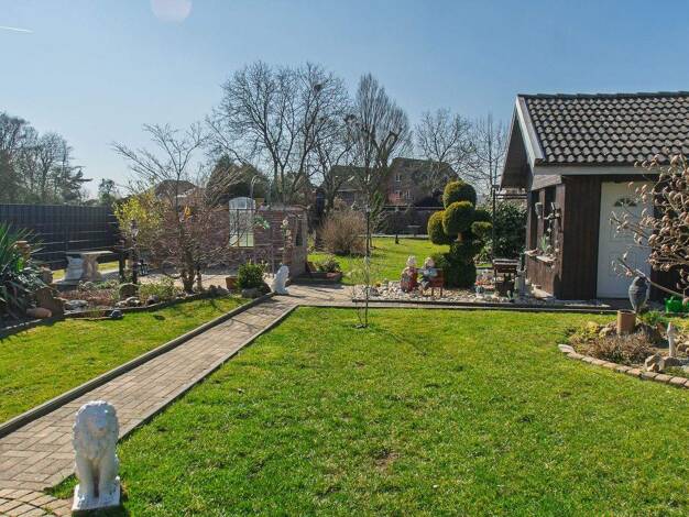 Objektbeschreibung Am Ende einer ruhigen Straße, direkt an Wiesen und freiem Feld gelegen, befindet sich dieses gepflegte, freistehende Einfamilienhaus mit integrierter Garage und großzügigem Garten....
