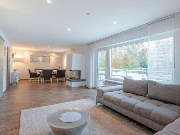 Über das großzügige Treppenhaus gelangen Sie in die Erdgeschosswohnung. Herzstück bildet der geräumige Flur, der mit einem Kaminofen eine angenehme Wohnatmosphäre schafft. Die abgeschlossene Küche bi...