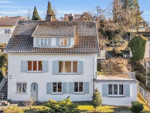 In außergewöhnlich begehrter Wohnlage im Süden von Ravensburg präsentiert sich dieses charaktervolle Einfamilienhaus mit Einliegerwohnung als architektonisch fein abgestimmtes Wohnensemble von besond...