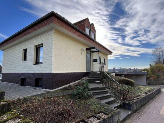 Dieses freistehende Einfamilienhaus mit einem großen Grundstück befindet sich in erhöhter Stadtrandlage mit schönem Blick über die Stadt. Der Bungalow ist unterkellert und bietet Ihnen eine gute Raum...