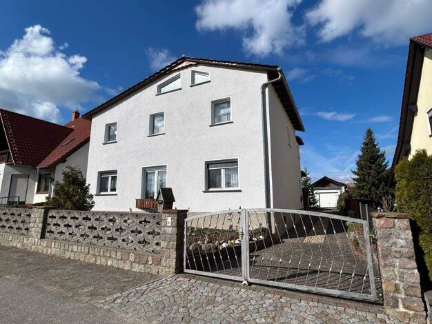 Es handelt sich um ein imJahr 1995 erbautes Einfamilienhaus mit Erker, Balkon, Keller und Einliegerwohnung. Das Grundstück hat eine Fläche von 2.254 m² und befindet sich in Sitzenroda. Während der hi...