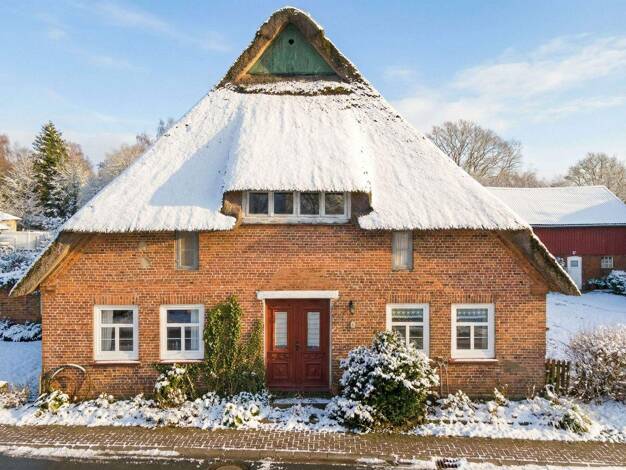 Wohnen im historischen Bauernhaus von 1850. Dieser Hof wird geprägt von altem Kopfsteinpflaster, Reeteindeckung, rotem Klinker und weißen Sprossenfenstern. Über die Jahre wurde das Haus achtsam renov...