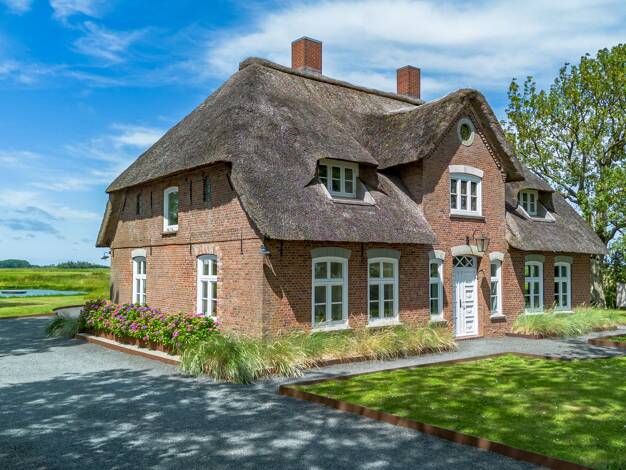 - Charmantes Reetdachhaus in Groven, in ruhiger Lage gelegen - Baujahr 1900, renoviert in 2002/2003 - Großzügiges Grundstück von ca. 1.125 m² - Wohnfläche von ca. 148,13 m², verteilt auf fünf Zimmer ...