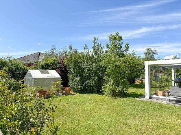 Das seniorengerechte Wohnhaus mit ausschließlich im Erdgeschoss ausgebauten Räumen bietet sich als Entspannungsoase an. Der mit zahlreichen Rosen angelegte Garten mit Aussicht auf "rosige Zeiten" bie...