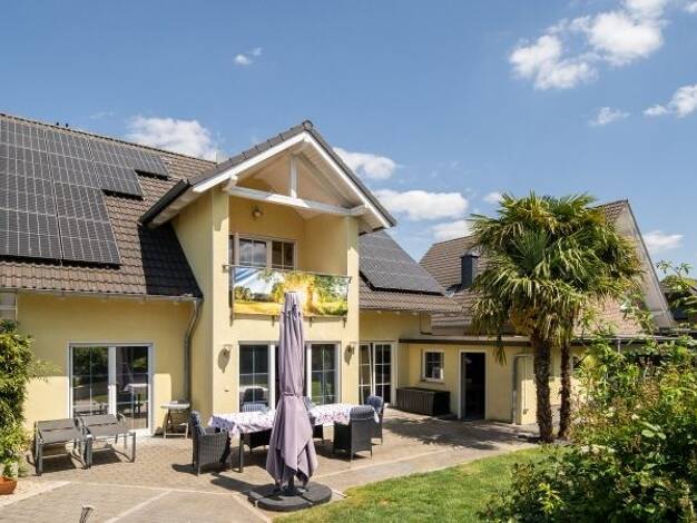 Dieses luxuriös ausgestattete Einfamilienhaus befindet sich in einer ruhigen Seitenstraße in Ortsrandlage und wurde 2004 errichtet. Auf insgesamt ca. 271m² Wohnfläche im Erd-, Ober und Kellergeschoss...