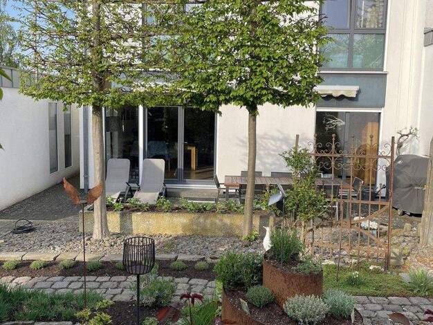 Durch ein Hoftor gelangen Sie in den uneinsichtigen Innenhof mit Zugang zum Haus und in den Garten. Hinter der Haustür selbst wartet im Erdgeschoss die Möglichkeit einen Wohnbereich mit Zugang zur ge...
