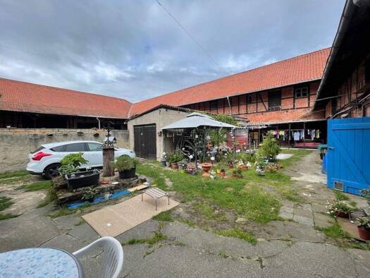 Bauerngut mit Entwicklungspotenzial mit zwei Wohneinheiten, Scheunen und Garten in Langenstein Dieses großzügige Bauerngrundstück im Herzen von Langenstein vereint Geschichte, Raum und Potenzial idea...