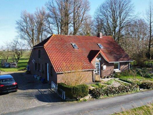 Dieses großzügige Einfamilienhaus mit separater Einliegerwohnung steht auf einem weitläufigen Grundstück von rund 1.913 m² in ruhiger Sackgassenlage im Wittmunder Ortsteil Blersum. Mit ca. 300 m² Woh...