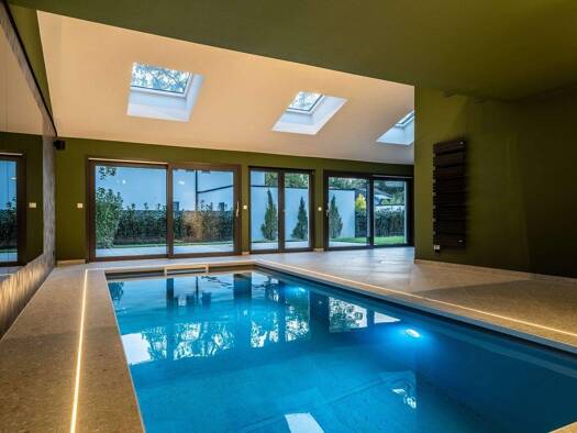 In absolut einzigartiger Lage an der nördlichen Stadtgrenze bei München-Bogenhausen, erhebt sich dieses 2019 errichtete Villenanwesen als echtes Unikat in München und Umgebung - ein Ort, der Ruhe, Na...