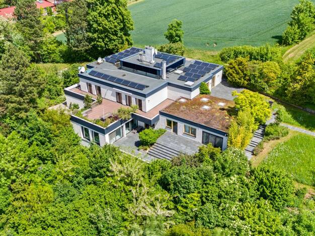 Diese außergewöhnliche Villa in absoluter Bestlage am Erlanger Burgberg ist ein echtes Unikat – sowohl architektonisch als auch hinsichtlich ihrer Lage. Eingebettet in ein ca. 1.886 m² großes, parkäh...